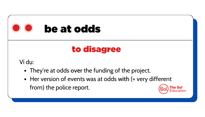 Be at odds: không đồng ý, có sự khác biệt về quan điểm