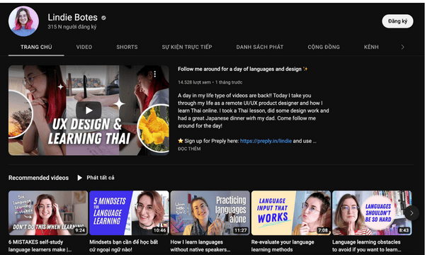 nếu bạn đang tìm kiếm nguồn cảm hứng để tiếp tục thúc đẩy đạt được mục tiêu của mình với tiếng Anh thì không cần tìm đâu xa. cách tốt nhất để có được bức tranh rõ ràng về khả năng thông thạo ngoại ngữ là lắng nghe những người đã trải qua cùng hành trình. lấy ví dụ như Lindie Botes. Ngay từ đầu kênh youtube của mình, cô ấy đã ghi lại hành trình học ngoại ngữ và các mức độ trôi chảy khác nhau của mình hầu như chỉ thông qua giọng điệu trò chuyện.