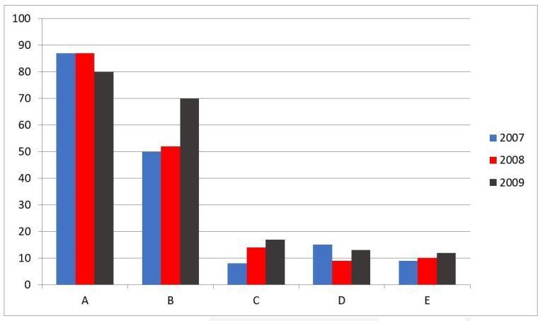 - Task 1: The bar chart below shows the number of films produced by 5 different countries from 2007-2009.