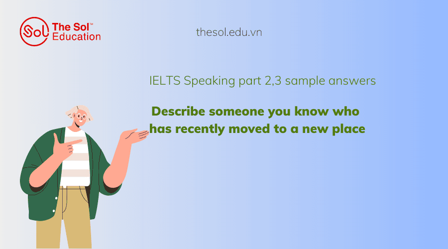 Nếu câu hỏi IELTS Speaking part 2 "Miêu tả một ai đó vừa chuyển đến nơi ở mới" làm bạn gặp khó khăn thì hãy xem ngay câu trả lời tham khảo của The SOL Education nhé. SOL cung cấp cho các bạn cả câu trả lời tham khảo cho part 2 và part 3 câu hỏi Describe someone you know who has recently moved to a new place.
