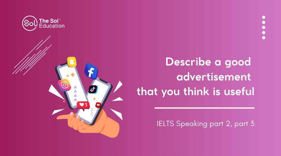 Hôm nay, SOL sẽ cùng các bạn chữa đề IELTS Speaking part 2 Describe a good advertisement that you think is useful. Hy vọng sẽ giúp cho bạn có thêm kinh nghiệm cho quá trình học IELTS của bản thân.