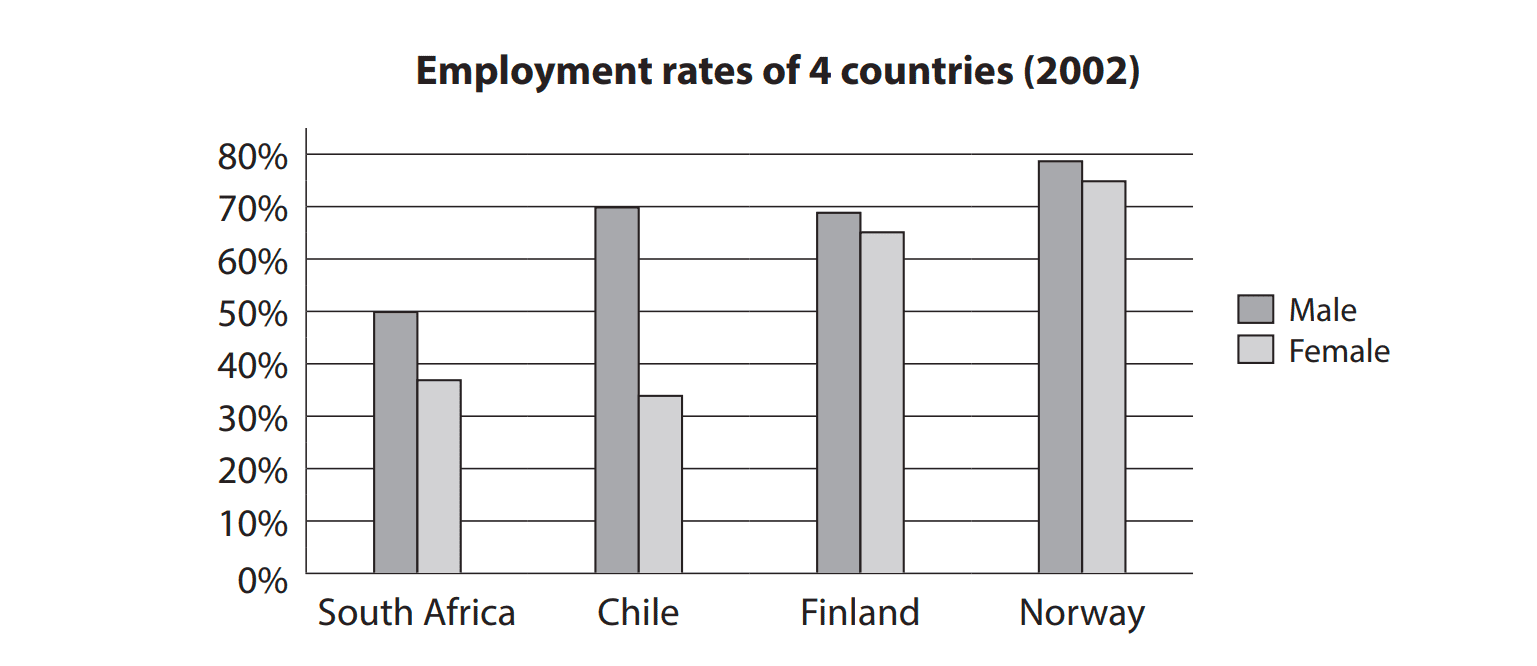 Đề bài: The graph below shows the employment rate of each gender in four different countries in 2002.