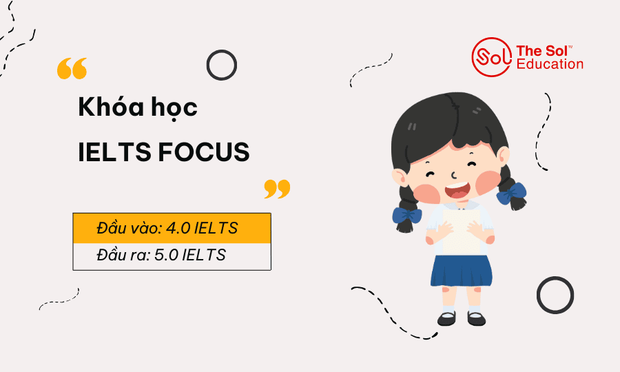 Khóa học IELTS Focus dành cho các em học sinh có đầu vào tương đương 4.0 IELTS, mục tiêu 5.0 IELTS.