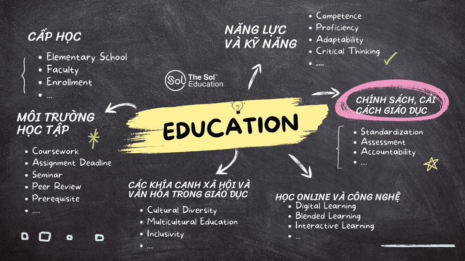 Học từ vựng IELTS là một yếu tố cực kì quan trọng giúp bạn có thể đạt được điểm cao trong bài thi, cũng như sử dụng được tiếng Anh một cách hiệu quả nói chung. Hôm nay, The SOL sẽ giới thiệu cho các bạn 1 phương pháp học từ vựng IELTS đạt hiệu quả cao - học từ vựng IELTS thông qua sơ đồ tư duy. Chúng ta cùng tìm hiểu nhé.