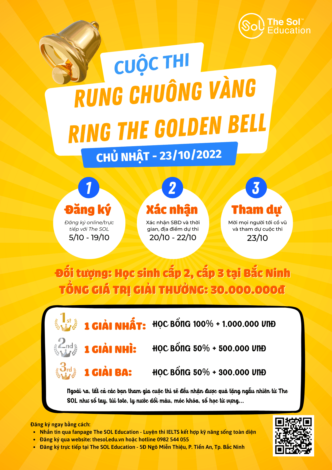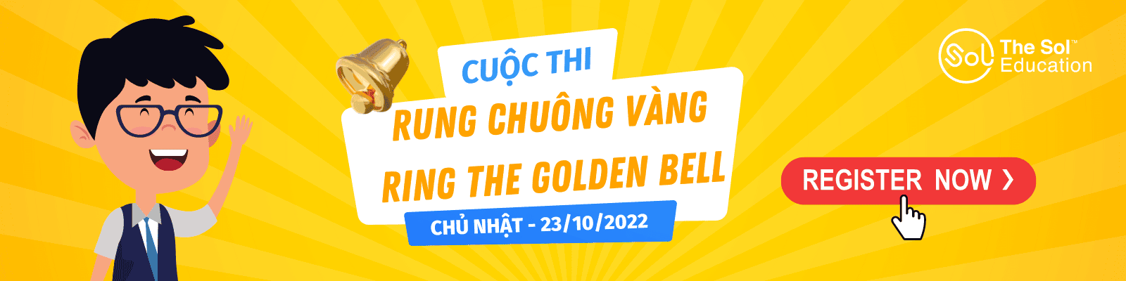 Các bạn học sinh chúng mình ơi! Vậy là chúng ta đã bắt đầu năm học mới một cách suôn sẻ và nhiều hứng khởi đúng không nào! Để năm học của mình thêm màu sắc thì các bạn đừng bỏ qua cuộc thi Rung chuông vàng siêu hấp dẫn của The SOL Education nhé!