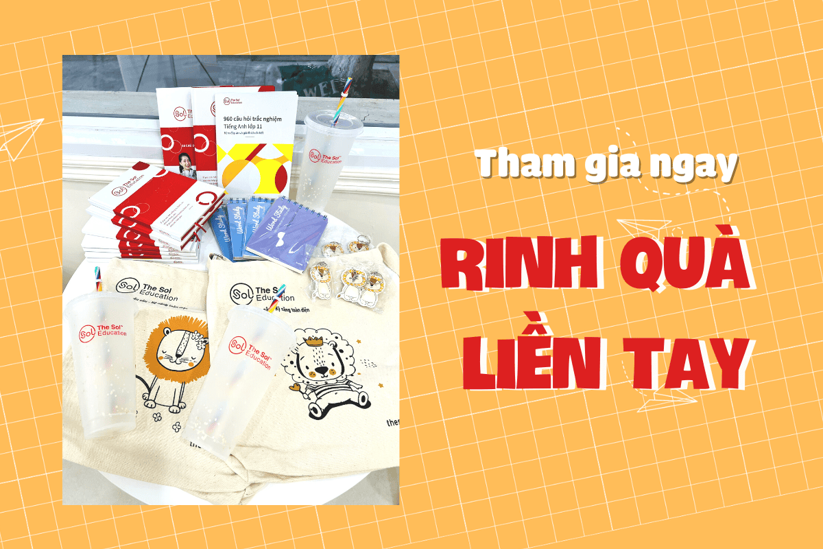 - Tất cả các thí sinh tham gia cuộc thi sẽ được quay vòng quay ngẫu nhiên để nhận được 1 trong các phần quà của The SOL: Sách tiếng Anh, sổ tay, sổ học từ vựng, ly nước đổi màu, móc khóa, túi tote...