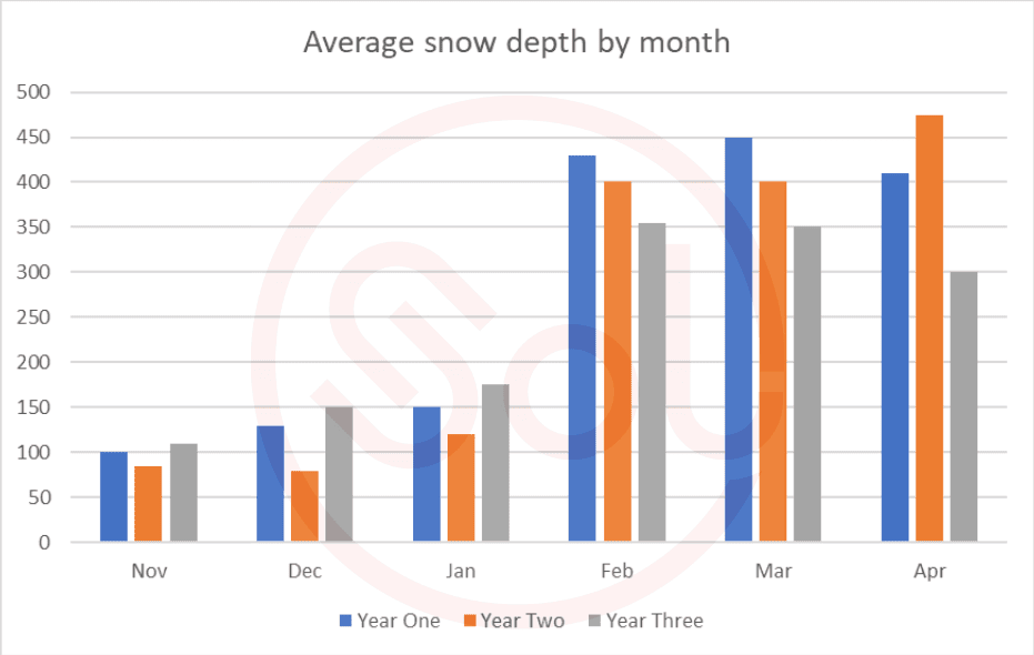- Task 1: Bar chart - The graph below shows snow depth (cm) at a particular ski resort in New Zealand in 2010 – 2012.