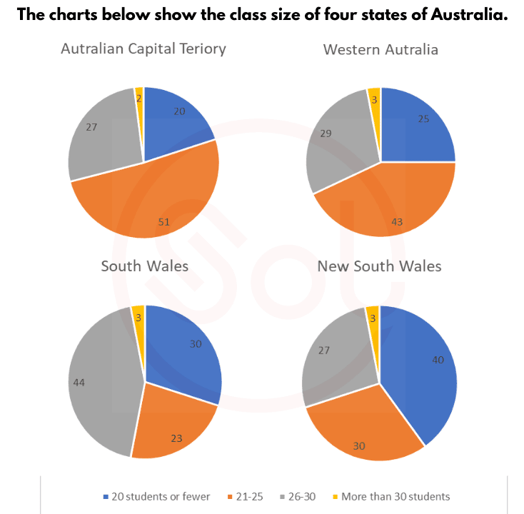 - Task 1: Pie Chart - The charts below show the class size of four states of Australia.