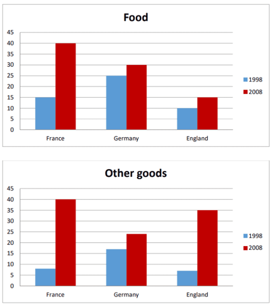 - Task 1: The charts below show the proportion of people’s spending on different commodities and services in a particular European country in 1958 and in 2008.