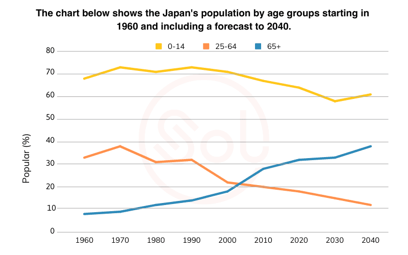 - Task 1: The chart below shows the Japan's population by age groups starting in 1960 and including a forecast to 2040.