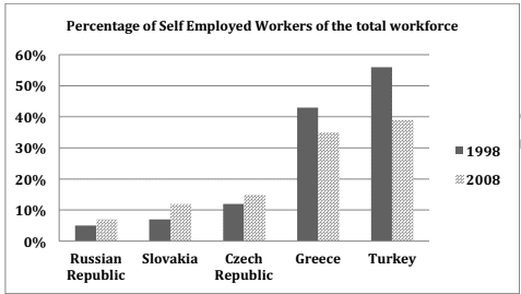 - Task 1: Bar chat: percentage of self-employed workers in five countries in 1998 and 2008