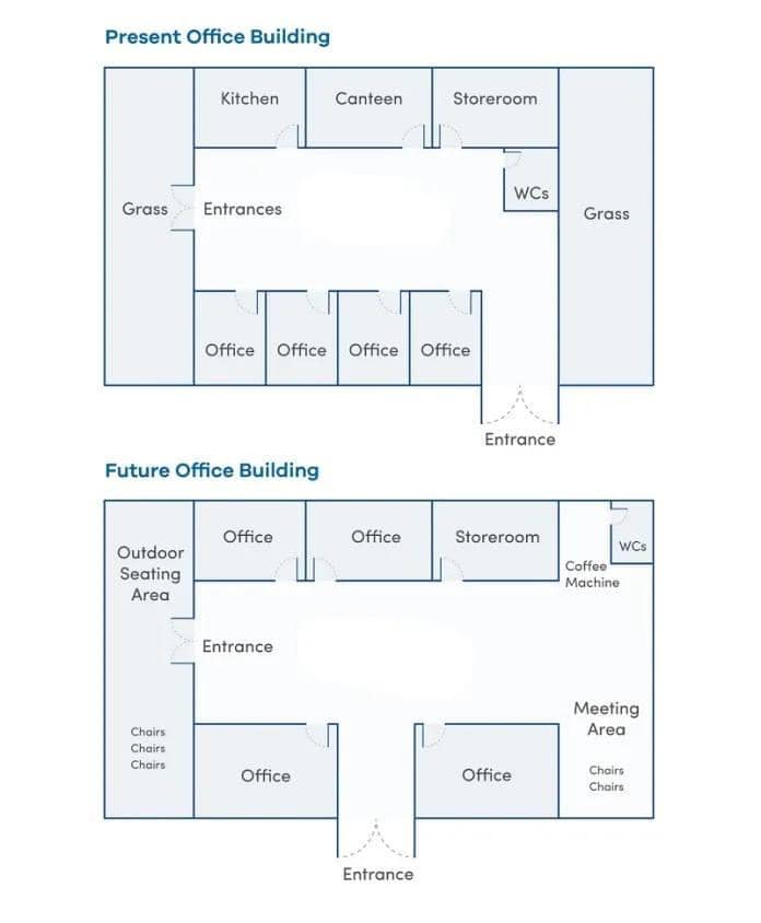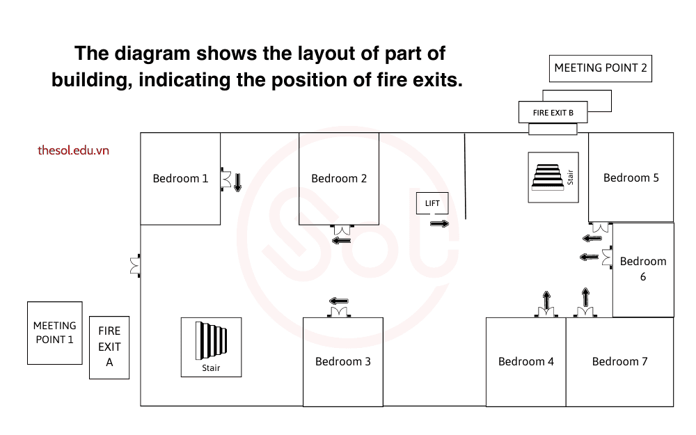 - Task 1: The diagram shows the layout of part of building, indicating the position of fire exits.