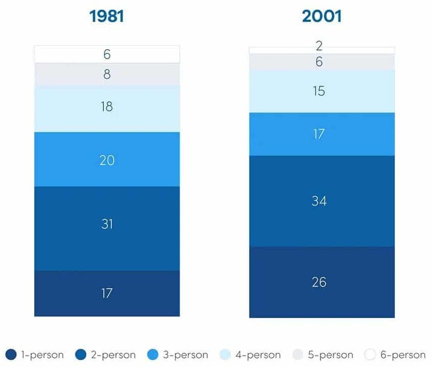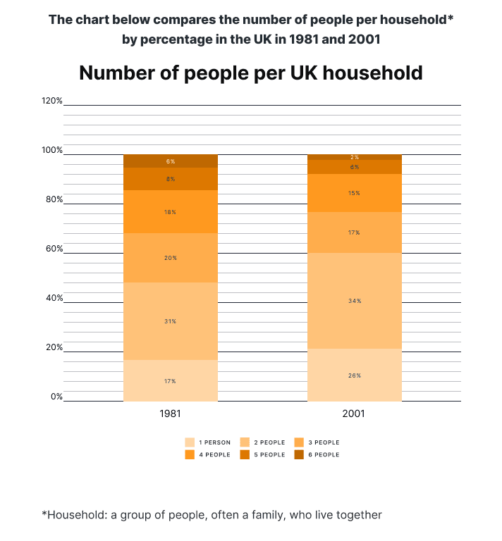 - Task 1: The chart below compares the number of people per household* by percentage in the UK in 1981 and 2001.
