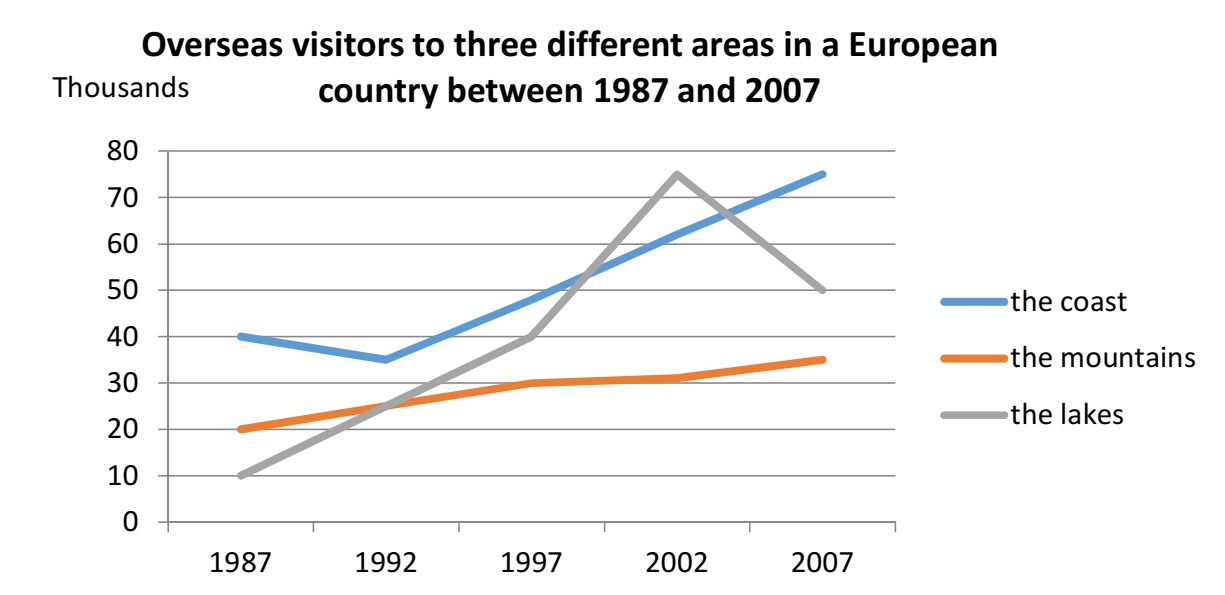 - Task 1: The graph below shows the number of overseas visitors to three different areas in a European country between 1987 and 2007. Summarise the information by selecting and reporting the main features and make comparisons where relevant.