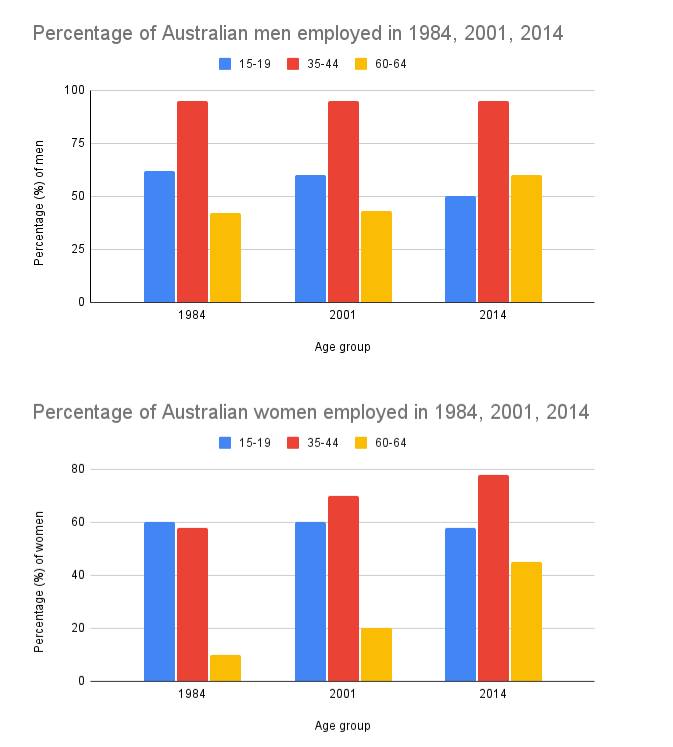 - Task 1: Percentage of Autralian men employed in 1984, 2001, 2014