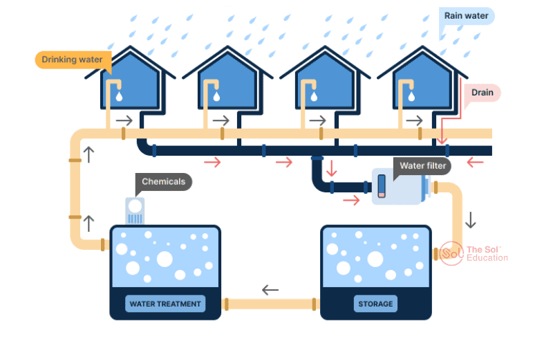 - Task 1: The diagram shows how rainwater is collected for the use of drinking water in an Australian town. Summarize the information by selecting and reporting the main features and make comparisons where relevant.