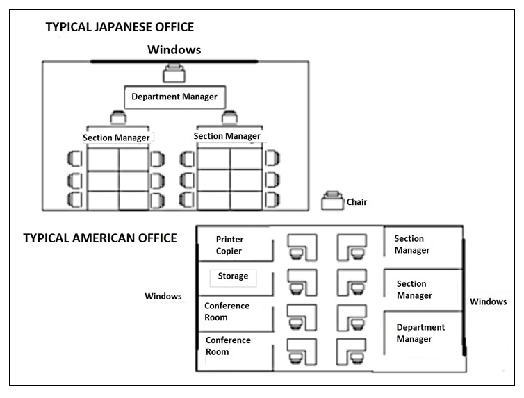 - Task 1: The graph below shows a typical American and a Japanese office. Summarise the information by selecting and reporting the main features and comparisons where relevant.