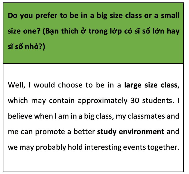 - Large/small size class (n): Lớp có sĩ số lớn/nhỏ