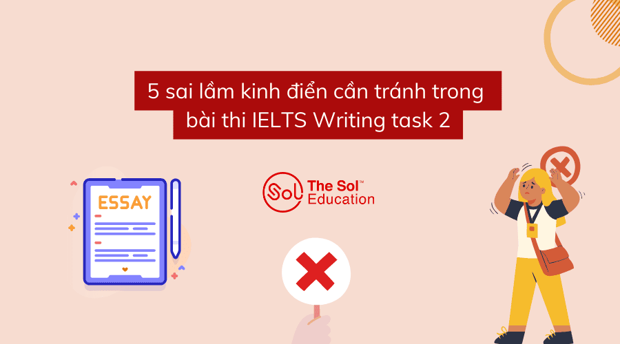 Trong kỳ thi viết IELTS, có rất nhiều điểm cần lưu ý khiến bạn không đạt điểm cao. Nếu bạn đã làm đi làm lại nhiều lần mà chỉ đạt band điểm 5.5 – 6.0 trong phần thi Task 2 thì rất có thể, bạn đã rơi vào 5 sai lầm kinh điển trong bài thi IELTS Writing. Hôm nay, The SOL sẽ giúp bạn tổng hợp 5 sai lầm nguy hiểm mà bạn cần tránh trong phần thi Task 2 nhé.