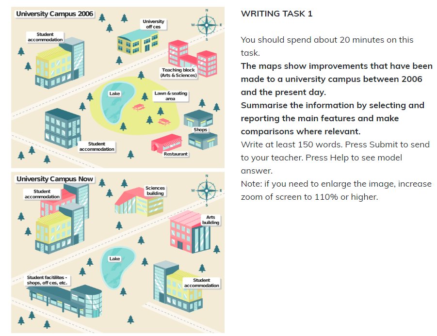 The given maps compare the changes made to a university campus from 2006 to the present day. There are five areas shown in the maps, including the north-east, north-west, center, south-west, and south-east of the campus.