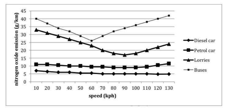 Regarding vehicles that release lower levels of emissions, petrol automobiles produce approximately 11g of nitrogen oxide per kilometer at a speed of 10kph. As the vehicle accelerates to 100kph, the amount of emissions decreases minimally by roughly 2g/km. However, at the velocity of 130kph, it rises to about 12g/km. Diesel cars emit a lower amount of roughly 7g/km at 10kph, which declines at a fairly constant rate to precisely 5g/km when the vehicle reaches 130kph.