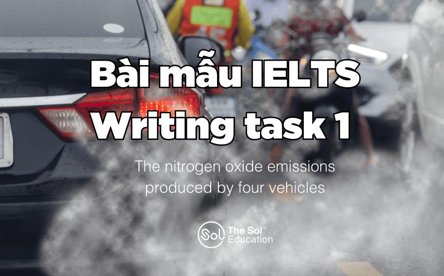 The given graph shows the nitrogen oxide emissions produced by four vehicles. Summarize the information by selecting and reporting the main features and make comparisons where relevant.