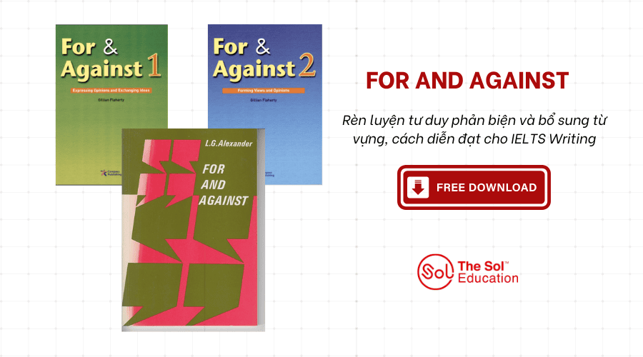 Bí ý tưởng là một trong số những vấn đề mà rất nhiều bạn gặp phải khi viết IELTS Writing task 2. Bên cạnh đó, một số bạn thấy khó khăn vì có ý tưởng nhưng thiếu từ vựng, cách diễn đạt phù hợp. Để giải quyết vấn đề này, The SOL IELTS mang đến cho các bạn 2 bộ tài liệu SIÊU HIẾM giúp rèn luyện tư duy phản biện, bổ sung ý tưởng và từ vựng cho phần thi IELTS Writing task 2 với các chủ đề phổ biến nhất - FOR AND AGAINST. Chúng ta cùng tìm hiểu trong bài viết này nhé.