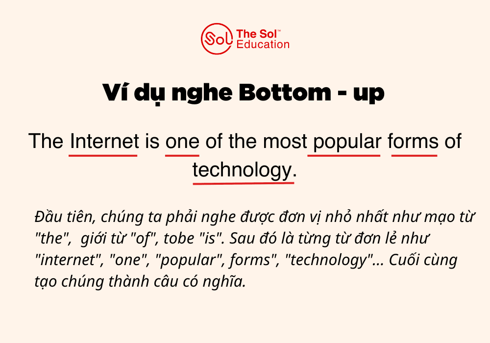 Tại sao The SOL lại nói về nghe bottom-up trước? Vì đây chính là kỹ năng cực kỳ phù hợp với các bạn mới bắt đầu học nghe, khi khả năng ngôn ngữ và từ vựng của chúng ta còn giới hạn, không thể xử lý toàn bộ thông tin được nghe.